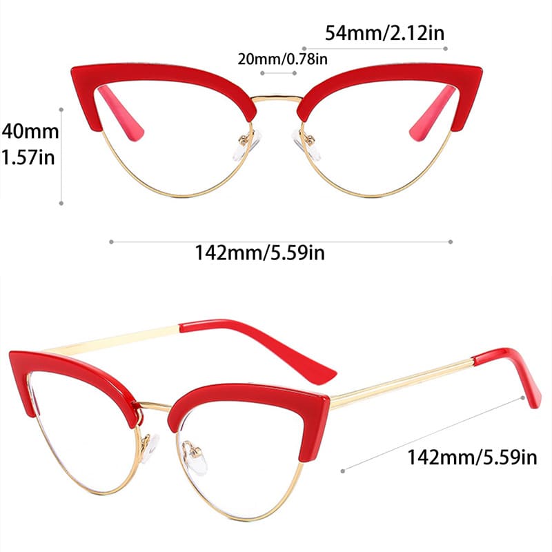 Upgrade your eyewear game with Cybele cat eye glasses. These Charlene browline glasses boast a chic cat-eye shape and high-quality original materials for both durability and style. With exquisite nose pads, these glasses are not only unique but also comfortable to wear. Lighten your load with just 22g.
