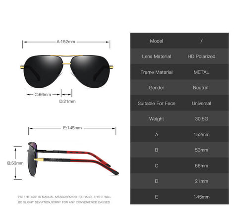 These avitor polarized sunglasses have deeply colored lenses that make you stand out from the crowd. The polarized lenses are made with triacetate cellulose to provide maximum optical clarity and 100% UV protection. They are lightweight and impact resistant, with superior visual and polarization clarity like never before. The polarized lenses are made from a high-end, multi-layered technology that blocks unwanted light, reduces glare with an anti-glare and scratch-resistant coating, and enables maximum optical clarity. They also block 100% of all harmful UVA/UVB rays as well as blue-light rays emitted from screens. The temples and frames are built with lightweight, scratch-resistant stainless steel. With a bold look and sturdy build, The Commando is always ready for action. Available in gold, silver, and black. Your 3-barrel Spring Hinges provide great comfort and fit, and the glasses have an overall lightweight construction for comfortable all-day wear. This is by design to ensure they keep their integrity for the long term.